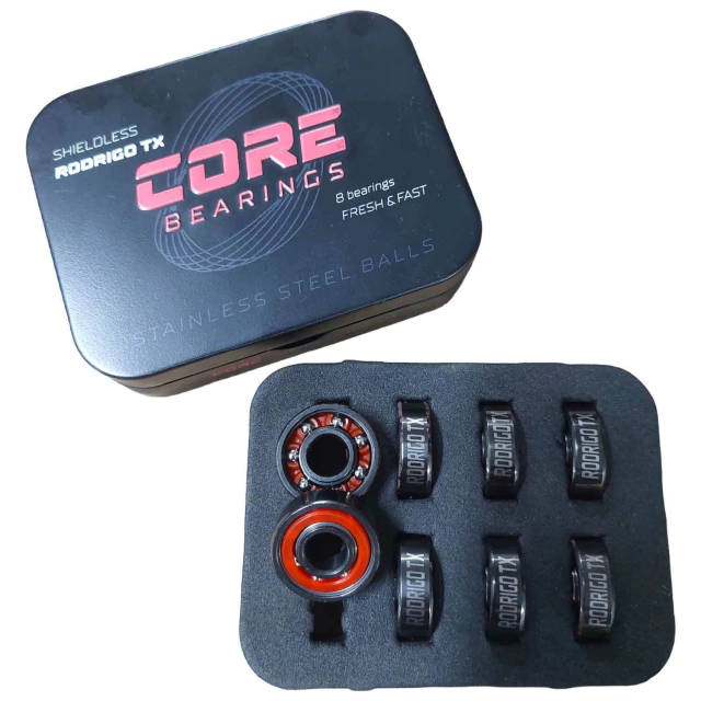 Com seu design Shieldless (sem escudos), o Core Bearings Rodrigo TX oferece menor atrito, resultando em um giro mais livre e maior velocidade. A ausência dos escudos também facilita a limpeza e manutenção, garantindo que seus rolamentos estejam sempre em condições ideais para encarar qualquer sessão.